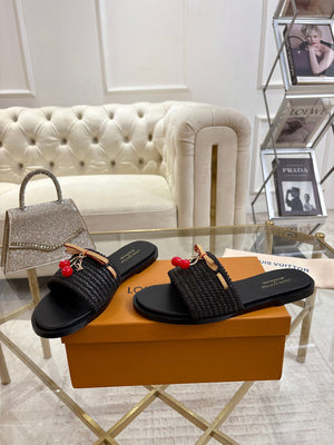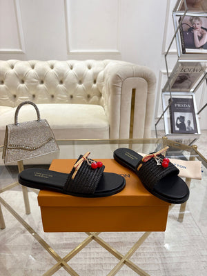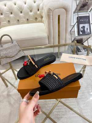 Step into style and comfort with the Women Sandal LV x TM Lily Flat Takashi Black. These chic flats blend sleek black design with playful elegance, perfect for adding a touch of fun to any outfit. Lightweight and easy to wear, they promise all-day comfort while keeping your look effortlessly trendy. Whether you're out on a casual stroll or meeting friends, these sandals bring a lively sparkle to your step.